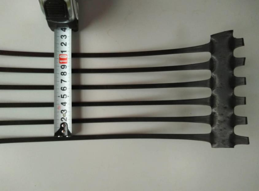 單向拉伸土工格柵是一種以高分子聚合物為主要原料,加入一定的防紫外線、抗老化助劑,經過單向拉伸使原來分布散亂的鏈形分子重新定向排列呈線性狀態,經擠出壓成薄板再沖規則孔網,然后縱向拉伸而成的高強度土工材料。這種過程中使高分子成定向線性狀態并形成分布均勻、節點強度高的長橢圓形網狀整體性結構。此種結構具有相當高的拉伸強度和拉伸模量,抗拉強度達到100-300KN/m,接近低碳鋼的水平,大大優于傳統的或現有的加筋材料,特別是該公司此類產品更具有超國際水平的高早期(伸長率在2%—5%)拉伸強度和拉伸模量。給土壤提供了理想的力的承擔和擴散的連鎖系統。該產品拉伸強度大(>150Mpa),適應各種土壤。